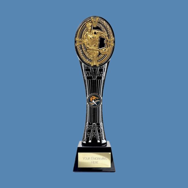 The Extreme Maverick Rugby Award, finished in carbon black, features a striking gold detail of a player running with a ball. The trophy, which is available in two sizes, is guaranteed to turn heads at your presentation.