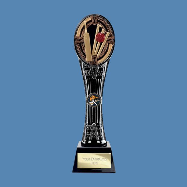 The contrast between the dark base and the antique bronze detailing works nicely, giving it a more contemporary feel while still fitting comfortably within a traditional cricket setting. It’s the kind of design that works just as well for a junior presentation as it does for a senior club event.