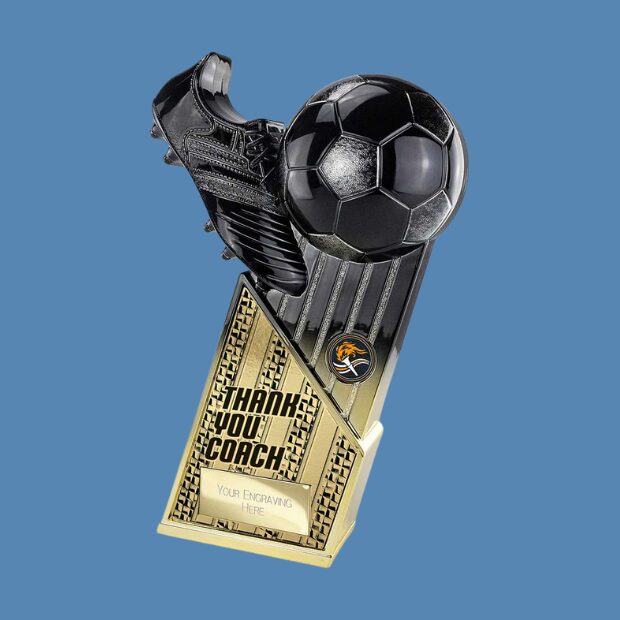 The engraving plate is properly placed on the base and can be engraved with the coach’s name or a message to thank them for their efforts throughout the season. This is a great way to ensure that the trophy is preserved for many years to come.
